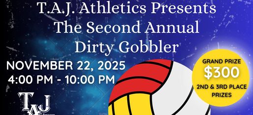 T.A.J. Presents The 2nd Annual Dirty Gobbler 2025 Volleyball Fundraiser Tournament for all ages. November 22, 2025 from 4pm to 10pm at Charlie's Sandbox 4511 Paseo Del Norte NE, Albuquerque New Mexico. Join the fun with a team of your own, register your squad today or as a free agent! Call or Text 575-386-3161 for more info.